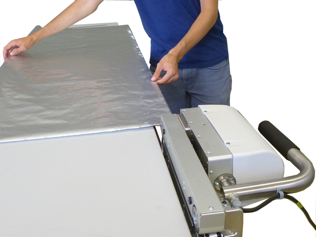 Belt sealer with linear guide rail which can be fixed on the working table. Perfect device for production of endless sealing, for joining sheets or production of hoods for transport purposes. Designed on the basis of the proven belt sealer MSC Plus for aluminium composite foil.